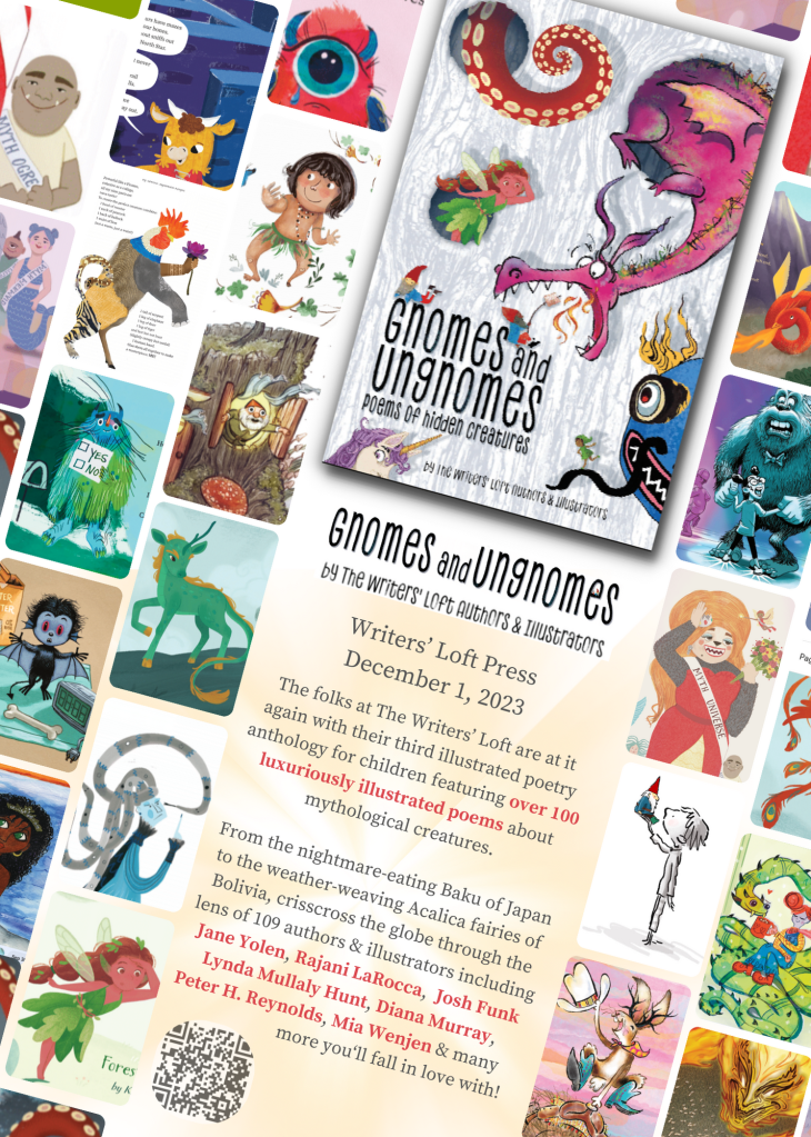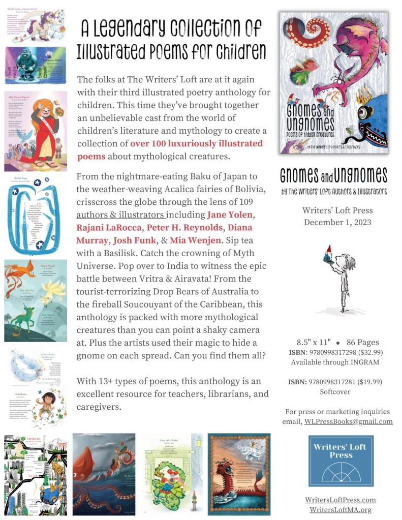The folks at The Writers’ Loft are at it again with their third illustrated poetry anthology for children. This time they’ve brought together an unbelievable cast from the world of children’s literature and mythology to create a collection of over 100 luxuriously illustrated poems about mythological creatures.